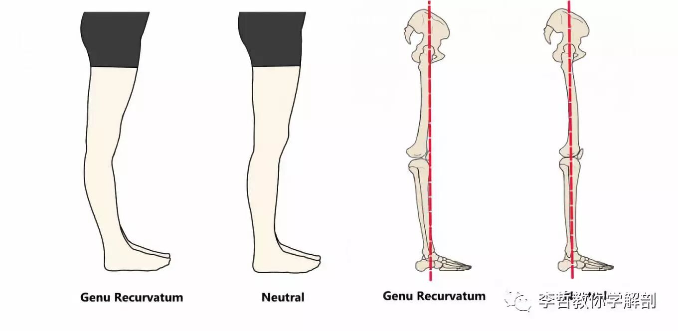 有一种人关节超级灵活,完全是过度活动。导致膝关节超伸上图,这会导致骨盆不稳定因素加大。对于这样的客户,我们都建议轻微弯曲膝关节,调整膝关节重量分布,帮助骨盆保持稳定。