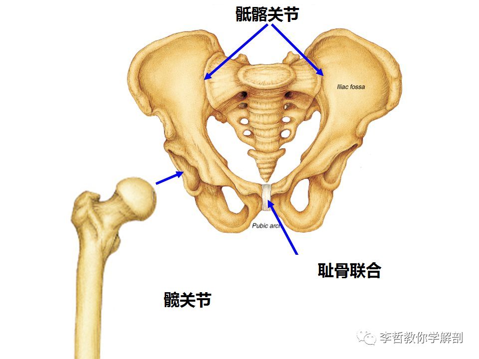 • 耻骨联合 位于骨盆最前端——想想迈克尔杰克逊的骨盆前部抓取的舞蹈动作 ,以及两个骶髂关节