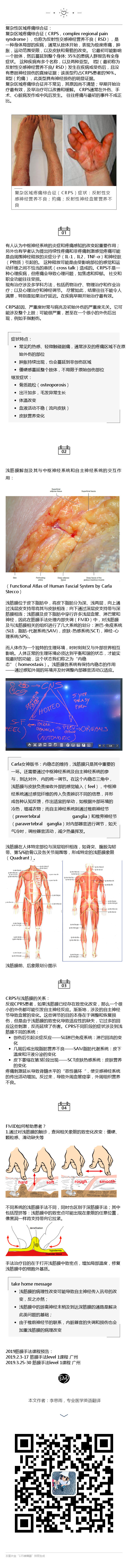 筋膜手法level 3课堂小结——复杂区域疼痛综合征浅筋膜假说: